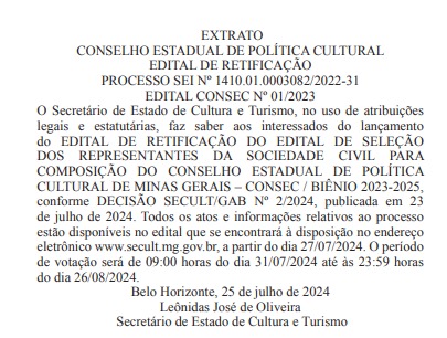De acordo com as diretrizes do edital, cabe interposição de recurso, que deverá ser apresentado por meio de requerimento fundamentado, dirigido à Comissão Eleitoral, no prazo de cinco dias úteis, conforme disposto nos artigos 51 a 58-A da Lei 14.184/2002. As decisões referentes aos recursos serão publicadas no Diário Oficial do Estado de Minas Gerais.